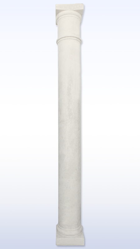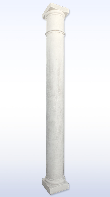 Coluna grande de betão, corpo redondo liso, com base quadrada.