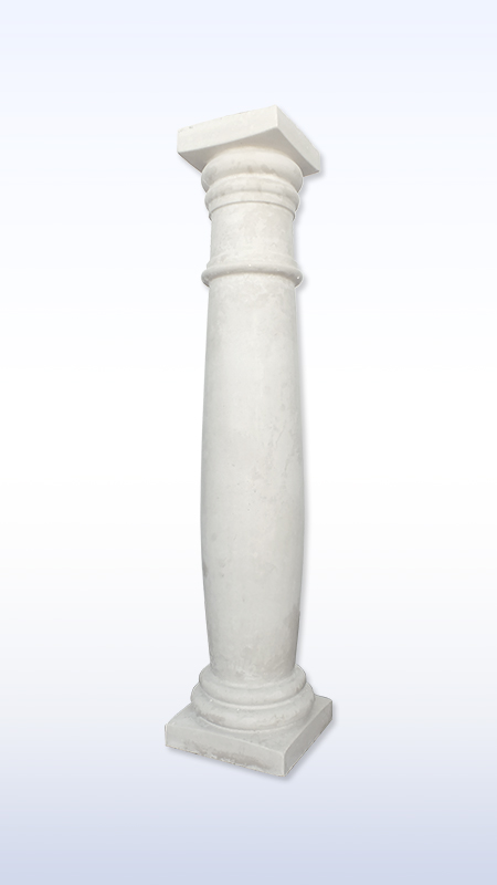 Coluna pequena de betão, corpo oval, com base quadrada.
