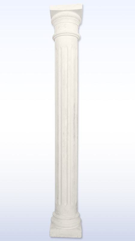 Coluna grande de betão, corpo redondo estriado, com base quadrada.